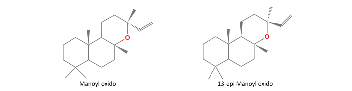 El ládano contiene sustancias terpénicas, entre las cuáles son características los diterpénos labdánicos4. Los diterpenos son sustancias que han demostrado su capacidad antibacteriana5. El 59,59% de los componentes del aceite de las hojas de Cistus creticus, son diterpenos. Entre ellos los dos más abundantes son el manoil óxido (19,61%) y el 13-epi-manoil óxido (13,44%). Este aceite demostró en un estudio tener una gran actividad contra las bacterias Gram positivas6.