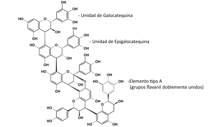 Polifenoles: ácido gálico y derivados y proantocianidinas (taninos condensados)