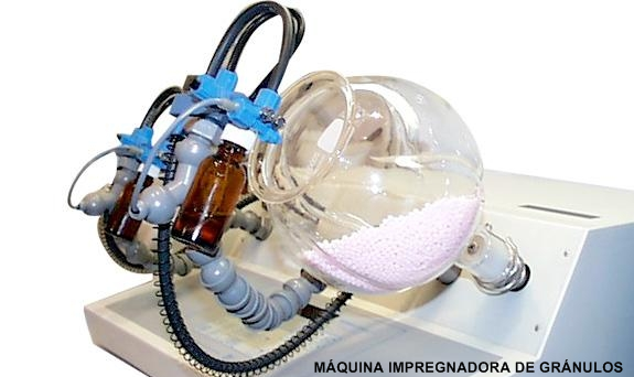 Con este líquido impregnaremos los gránulos de lactosa-sacarosa, en un impregnador como el de la fotografía de más abajo, y después de secarlos, ya tendremos los gránulos del medicamento Arnica 30CH listos para tomar.