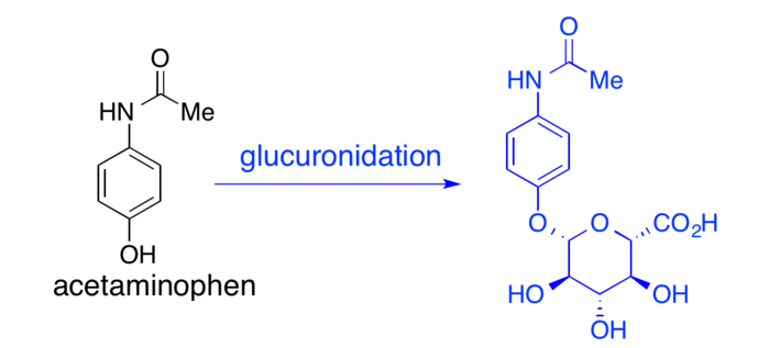 Reacción de conjugación con ácido glucurónico -glucuronoconjugación- (60-80%). Imagen Andrew Murkin