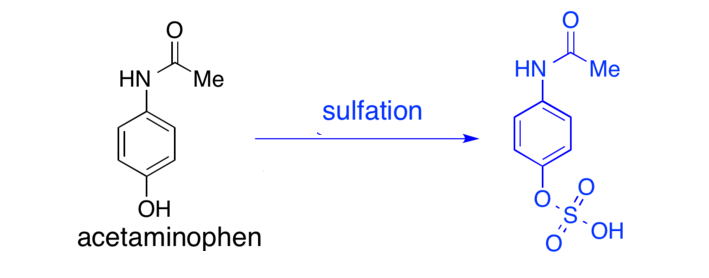 Reacción de conjugación con ácido sulfúrico -sulfoconjugación- (20-30%). Imagen Andrew Murkin