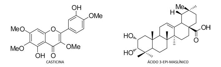 Casticina -flavonoide- y Ácido Maslínico -triterpeno-. Imagen Shao-Nong Chen et al. College of Pharmacy, University of Illinois at Chicago.
