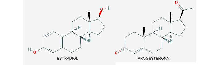 Estructura química del Estradiol y de la Progesterona. Imágen PubChem Open Chemistry database.