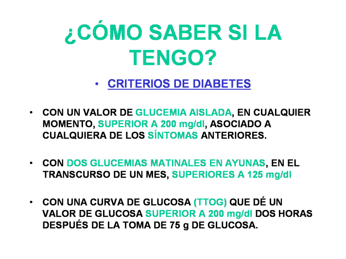Pero parece que a nadie le gusta ser diabético, por todo lo que comporta esta enfermedad. Solemos asociarla a limitaciones en la dieta, sacrificios con la comida, miedo a la insulina inyectada... Y todo lo reducimos a un "tengo un poquito de azúcar". Entonces, ¿cómo podemos saber con certeza si tenemos o no diabetes? ¿Cuáles son los criterios diagnósticos actualmente aceptados para poder decir que una persona padece esta enfermedad?